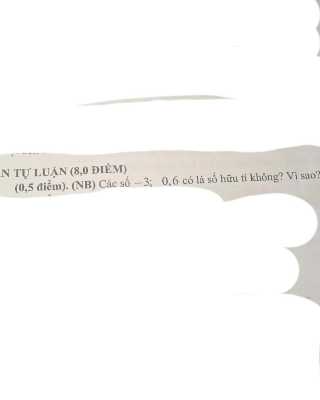`->` Các số `-3 ; 0,6` là số hữu tỉ vì chúng có thể viết dưới dạng `a/b` và `a,b` thuộc `Z` và `b` khác `0`.
