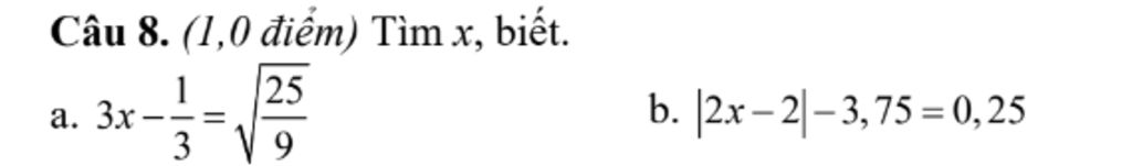 Câu 8. (1,0 điểm) Tìm x, biết.