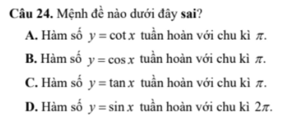 D. Hàm số y = sin x tuần hoàn với chu kì 27.