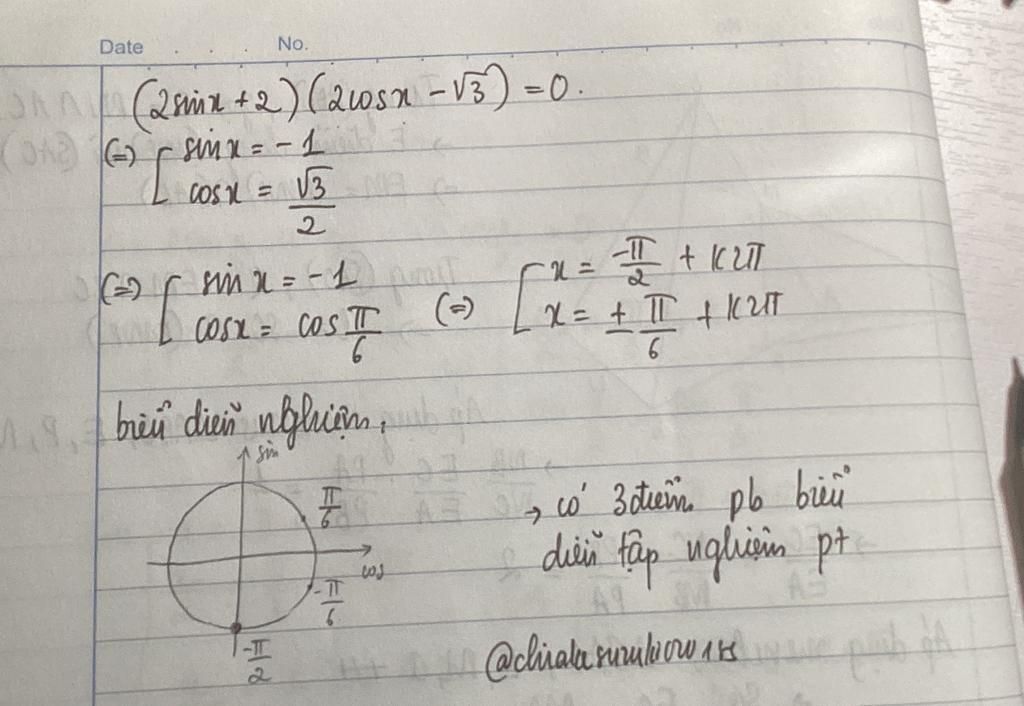 Có bao nhiêu điểm phân biệt trên đường tròn lượng giác biểu diễn tập nghiệm của phương trình (2sin x + 2)(2cos x - √3 ) = 0 ?