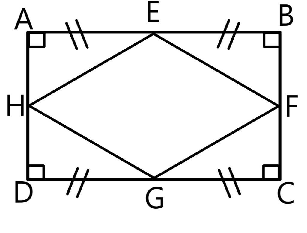 cho hình chữ nhật ABCD.lấy E,F,G,H lần lượt là trung điểm AB,BC,CD,DA.Chứng minh:Tứ Giác là hình thoi