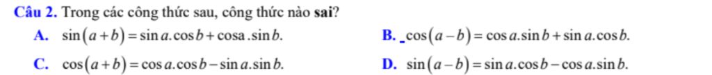 `Cos(a-b) = Cosa.Cosb + Sina.Sinb`