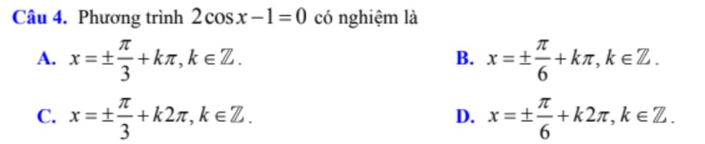 `<=> x=[pi]/3+k2pi` hoặc `x=-[pi]/3+k2pi (k in ZZ)`