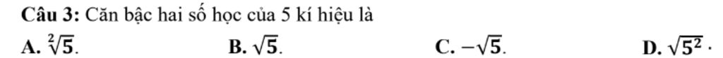 Căn bậc `2` số học của `5` là `:\sqrt(5)`