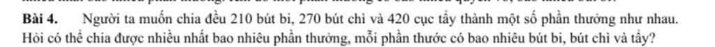 `ƯCLN` là của các số `{ 210 ; 270 ; 420 }` là : `30`