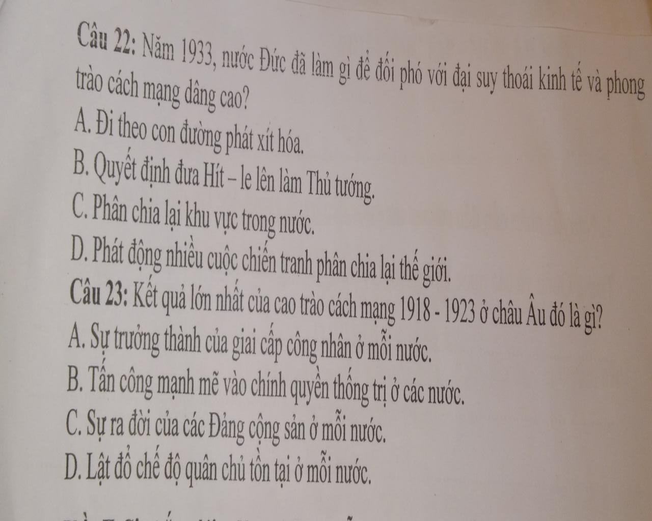 C23. C. Sự ra đời của các Đảng cộng sản ở mỗi nước.