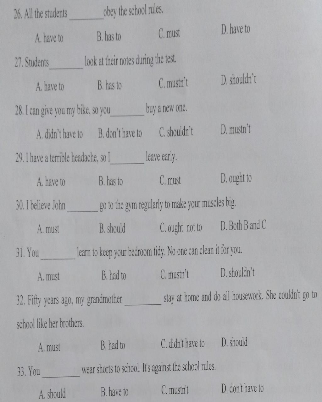 26. A và D Vì đây là luật lệ phải chấp hành nên ta chọn have to