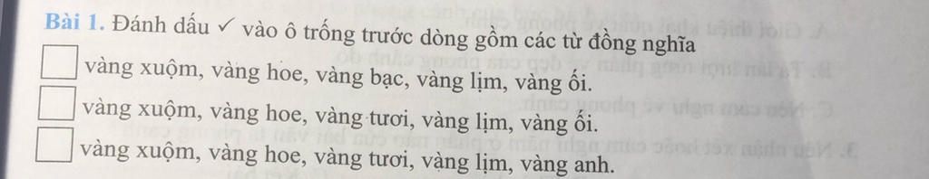 +) vàng xuộm, vàng hoe, vàng tươi, vàng lịm, vàng anh