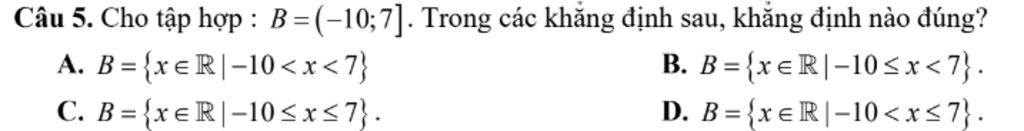 Mô tả tập hợp: Là nửa khoảng từ `-10` đến `7`, lấy điểm `7`