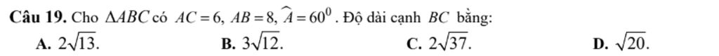 `=>` $\rm{BC=\sqrt{6^2+8^2-2.6.8.cos60^o}}$
