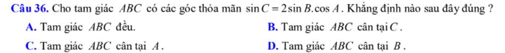 <=>c^2 = b^2 + c^2 - a^2 <=> b^2 = a^2 <=> b = a