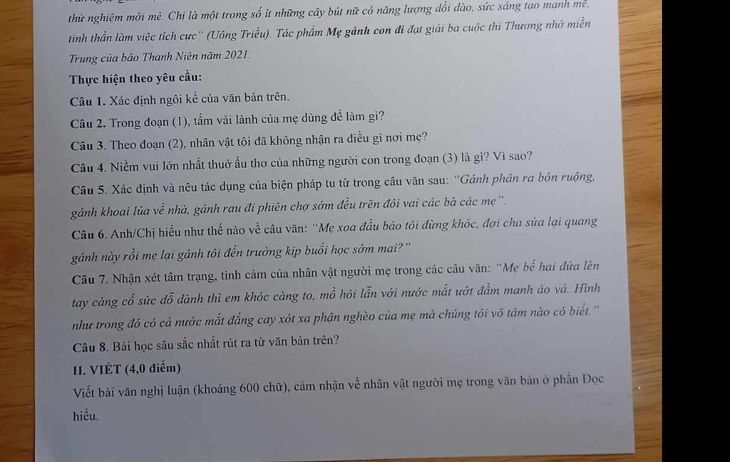 Trong dòng chảy của cuộc sống hiện đại, những giá trị truyền thống đôi khi bị mai một. Tuy nhiên, tình mẫu tử vẫn luôn là một chủ đề bất tận, lay động trái tim của biết bao người. Qua đoạn trích “Mẹ gánh con đi” của nhà văn Trần Thị Tú Ngọc, hình ảnh người mẹ tảo tần, giàu đức hi sinh đã để lại trong lòng người đọc những ấn tượng sâu sắc.