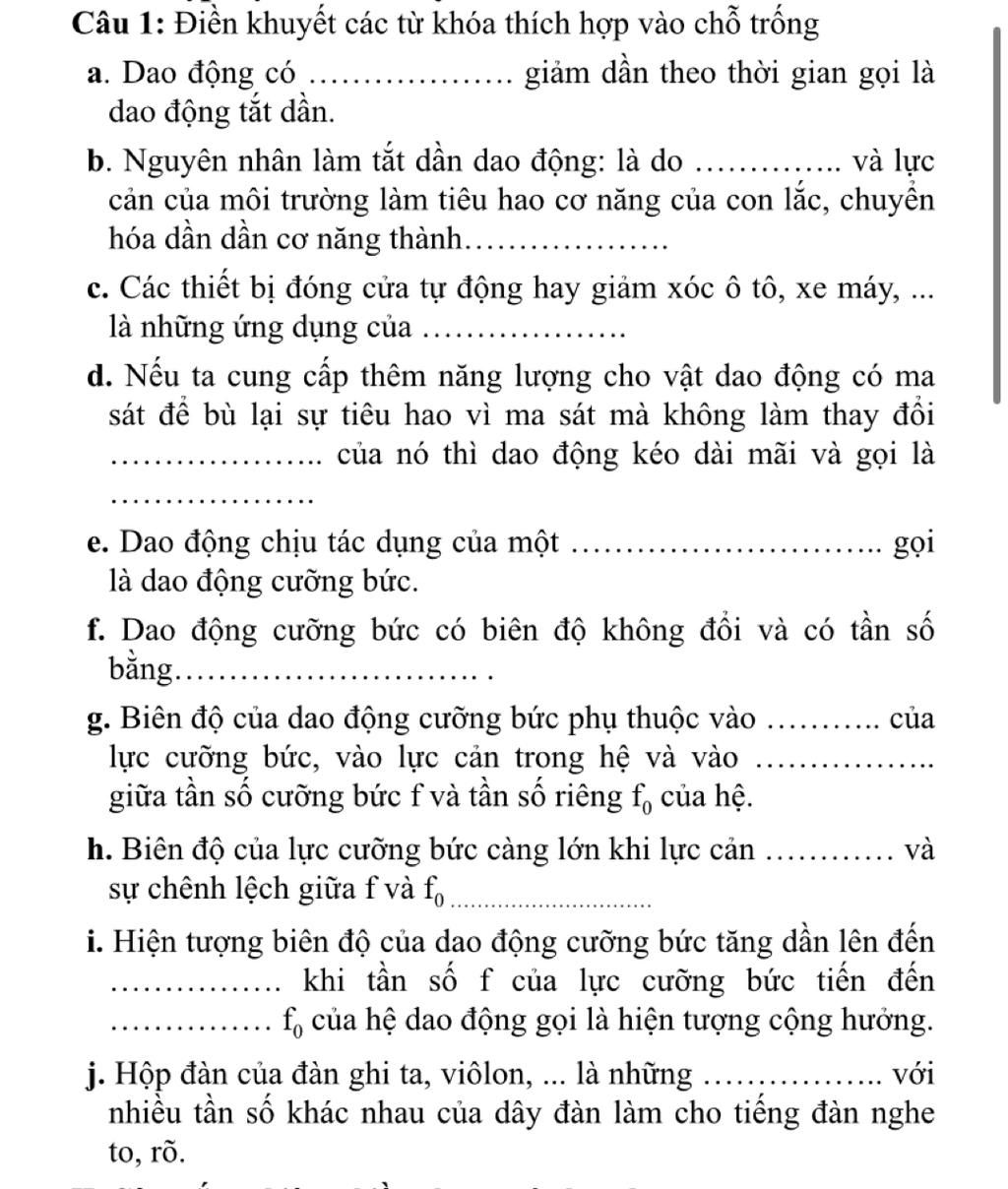 e. Dao động chịu tác dụng của một ngoại lực tuần hoàn gọi là dao động cưỡng bức.