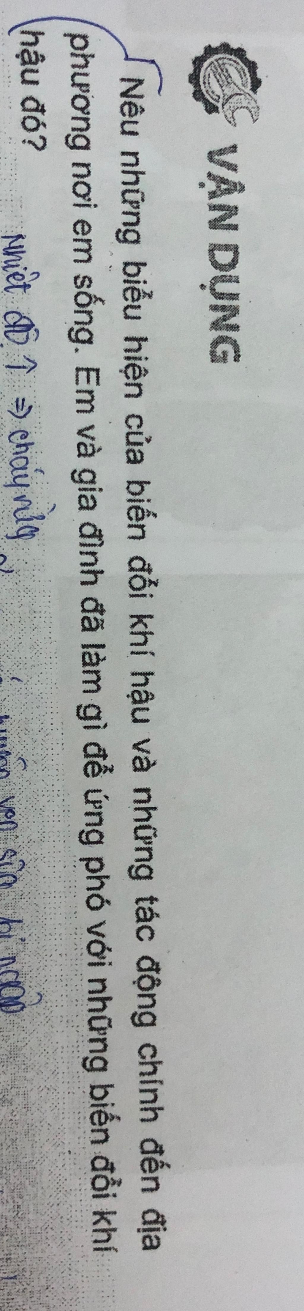 `-` Tác động của biến đổi khí hậu đến địa phương em sinh sống: