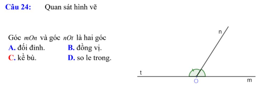 `-> \hat{mOn} ; \hat{nOt}` kề bù