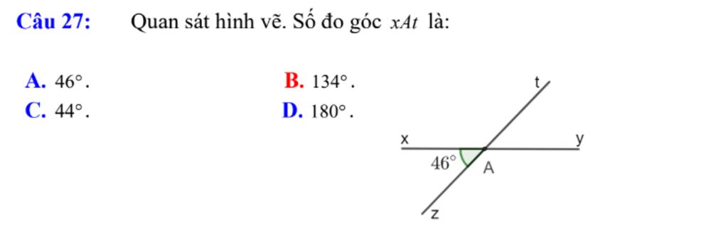 Mà `\hat{xAz} = 46^o => \hat{tAy} = 46^o`
