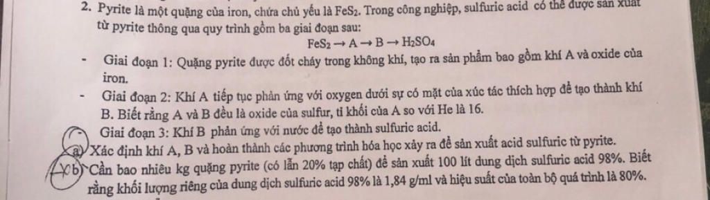 $\rm m_{quặng} ~ = ~ \frac{m_{FeS_2}}{80\%} ~ = ~ \frac{138000}{80\%} ~ = ~ 172500 ~ (g)$