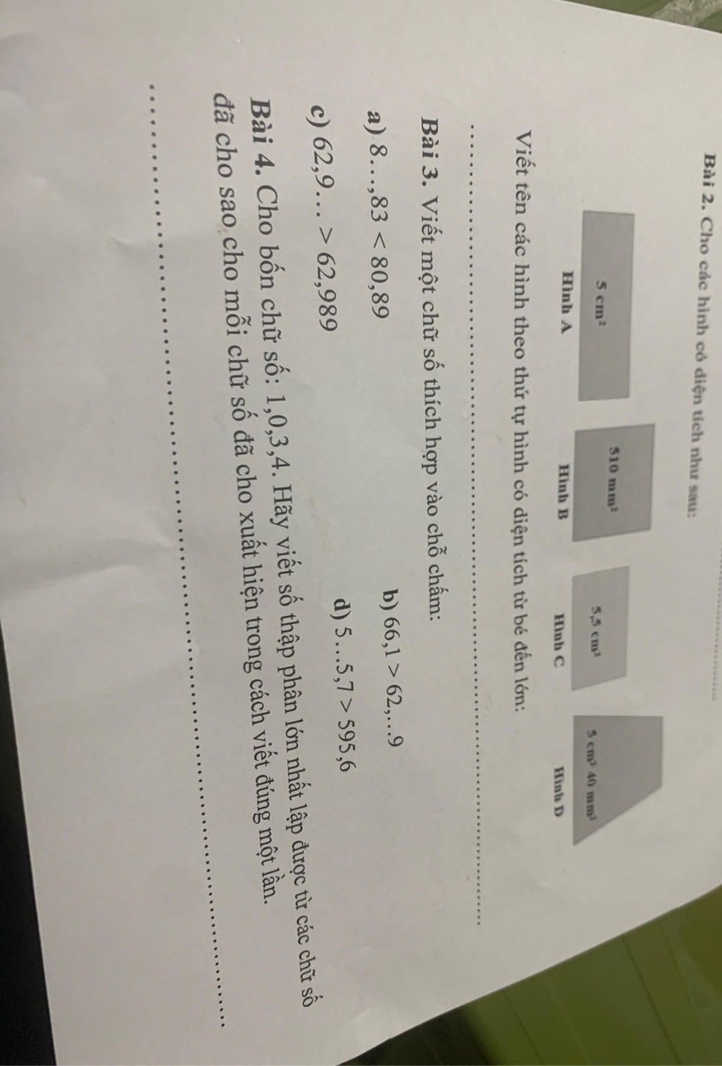 mik sẽ đổi các số đó thành các só có đơn vị đo là mm2