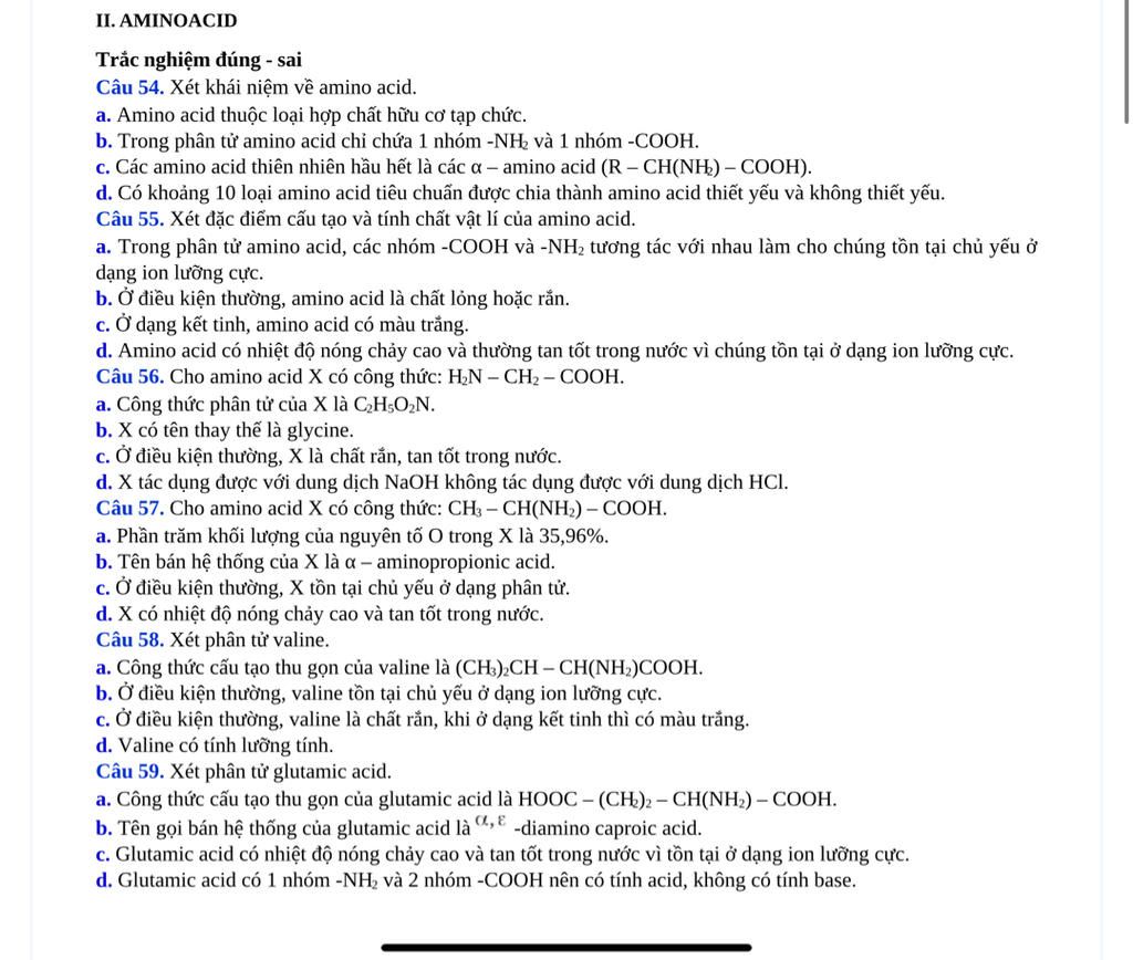 `->` amino acid có chứa 2 loại chức là amine và carboxylic acid
