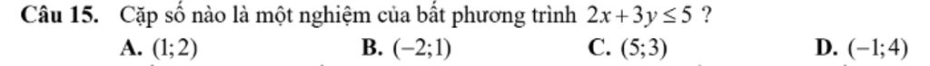 `to` Cặp `(-2;1)` là nghiệm của bất phương trình