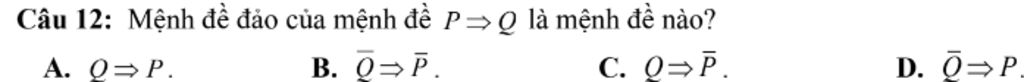 `->` Mệnh đề đảo của nó là nếu `Q` thì `P`