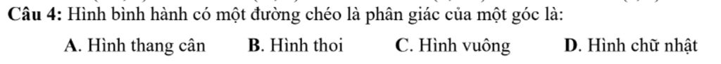 Hình bình hành có một đường chéo là phân giác của một góc là hình thoi