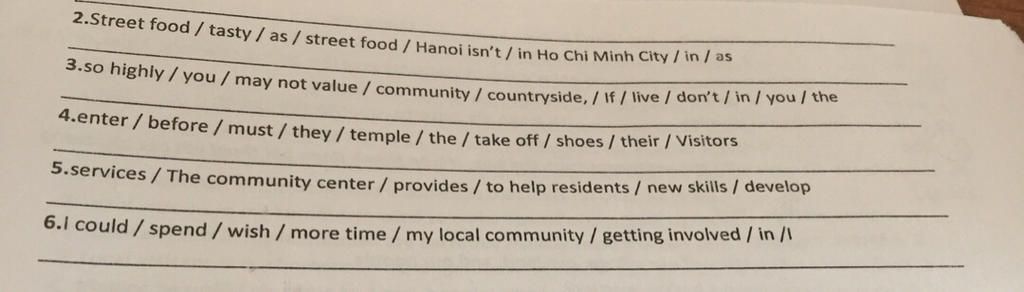 Đầu bài : Sắp xếp lại các cụm từ và cụm từ thành câu hoàn chỉnh .