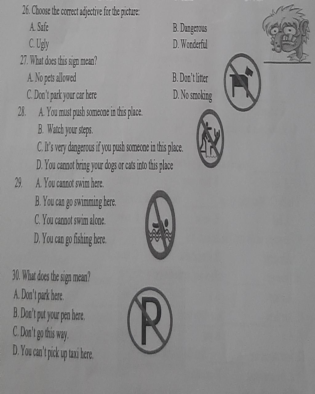 26.A.Safe (an toàn) B.Dangerous (nguy hiểm)