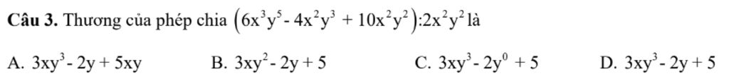 `(6x^3y^5-4x^2y^3+10x^2y^2):2x^2y^2`