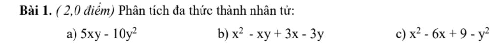 `a)` `5xy - 10y^2 = 5y(x - 2y)`
