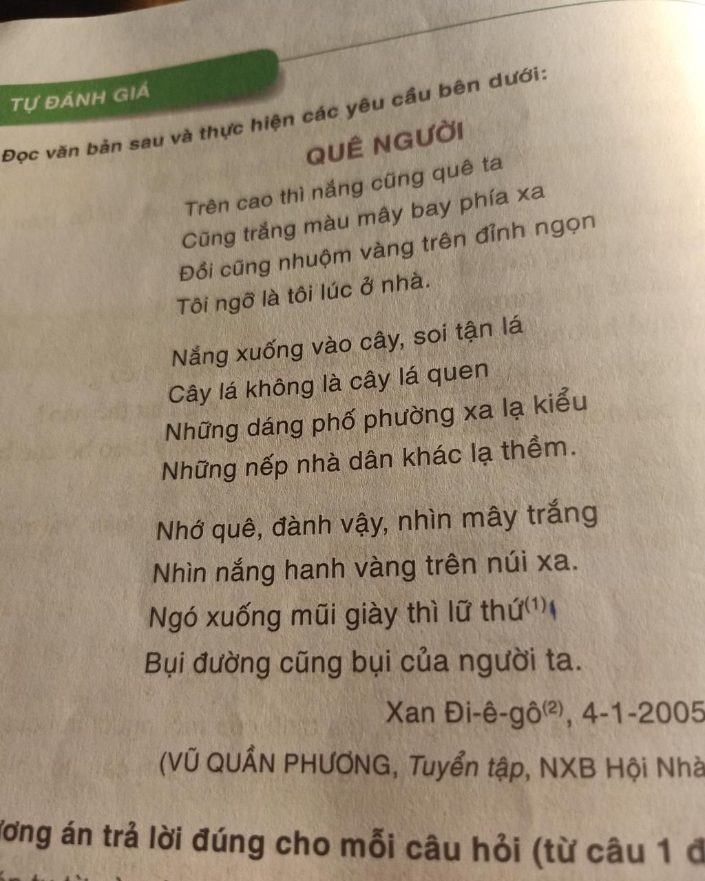 viết một đoạn văn cảm nhận khổ 2 của bài thơ Quê người của nhà thơ Vũ Quân Phương