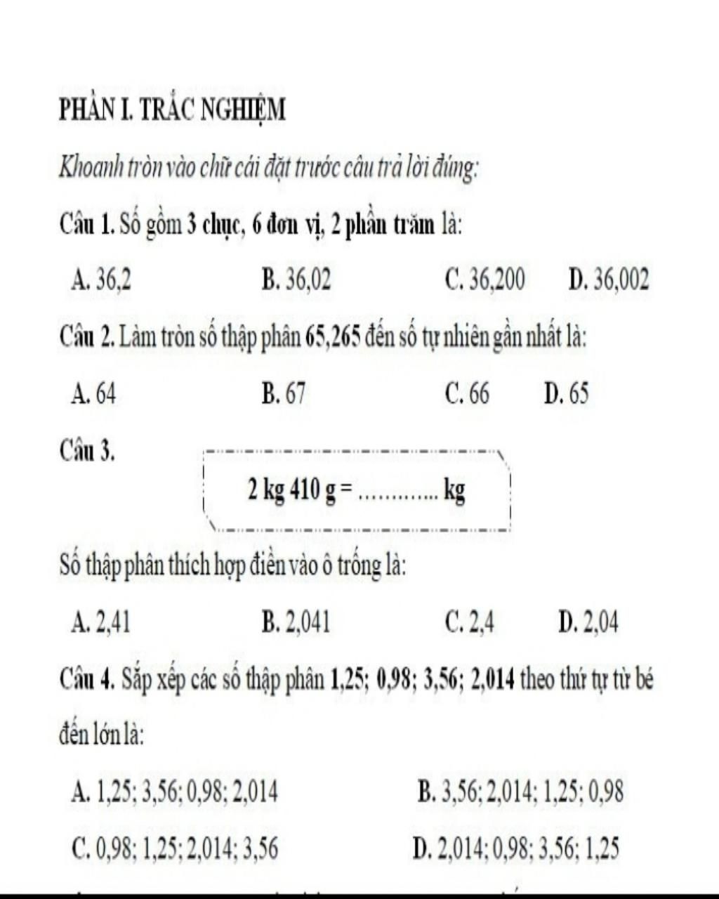 `=> 65,265` làm tròn đến hàng đơn vị là `65`