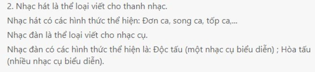 -Nhạc hát: là thể loại viết cho thanh nhạc