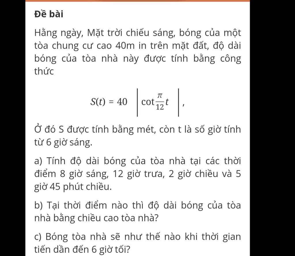 a) Tính độ dài bóng của tòa nhà tại các thời
