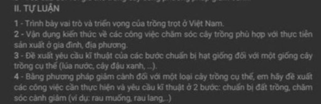 1. Trình bày vai trò và triển vọng của trồng trọt ở Việt Nam.
