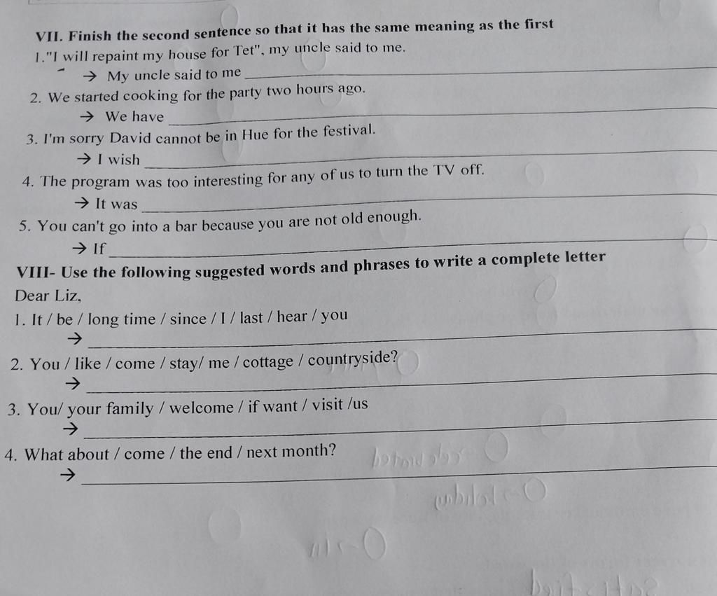 VII. Finish the second sentence so that it has the same meaning as the first.