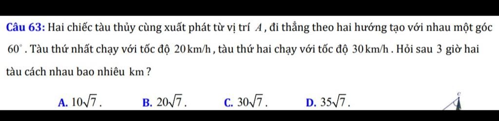 Sau $3$ giờ tàu thứ $I$ đi được $3\cdot 20=60$ km, tàu thứ $II$ đi được $3\cdot 30=90$ km