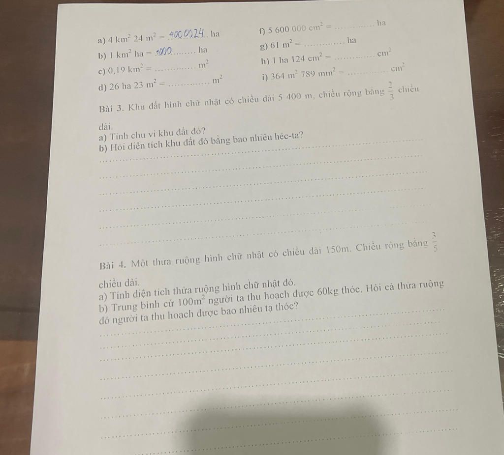 `h)` 1 ha 124 cm² = 100 000 124 cm²