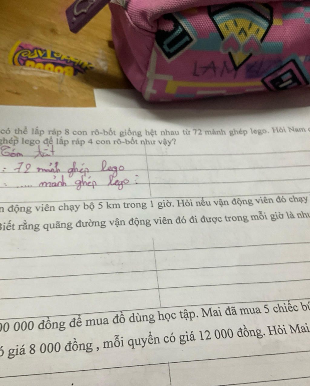 có thể lắp ráp 8 con rô-bốt giống hệt nhau từ 72 mảnh ghép lego. Hỏi Nam 6