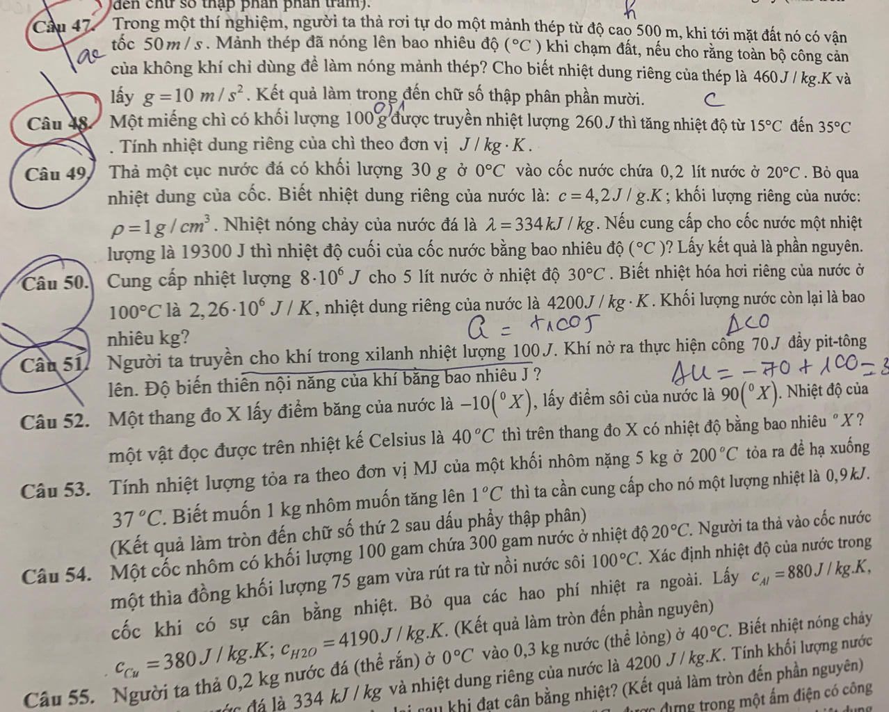 Nhiệt dung riêng của nhôm là $c =0,9 (kJ/kg.K)$