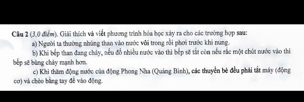 Câu 2 (3,0 điểm). Giải thích và viết phương trình hóa học xảy ra cho các trường hợp sau: