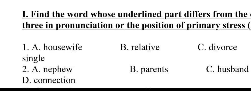 − $\textit{B,C,D}$ /i/ phát âm thành /ɪ/.