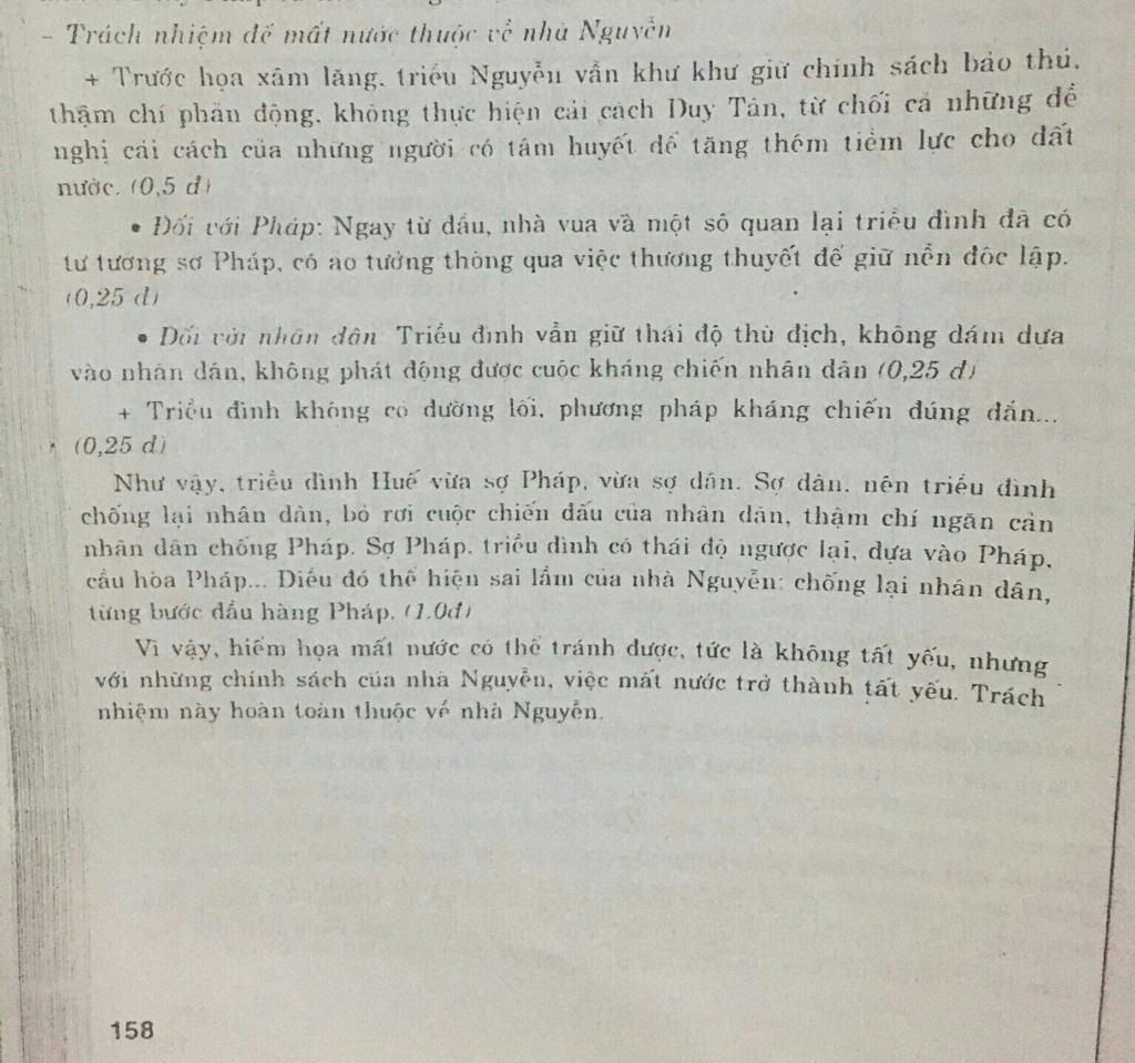 => như vậy trách nhiệm của nhà Nguyễn với tư cách của một triều đại lãnh đạo quản lí đất nước trước nguy cơ xâm lược từ bên ngoài đã không có những biện pháp để nâng cao sức mạnh tự vệ mà còn thi hành những chính sách thiển cận,sai lầm làm cho tiềm lực quốc gia suy kiệt, hao mòn sức dân không còn khả năng phòng thủ đất nước, tạo điều kiện cho Pháp dẩy mạnh xâm lược