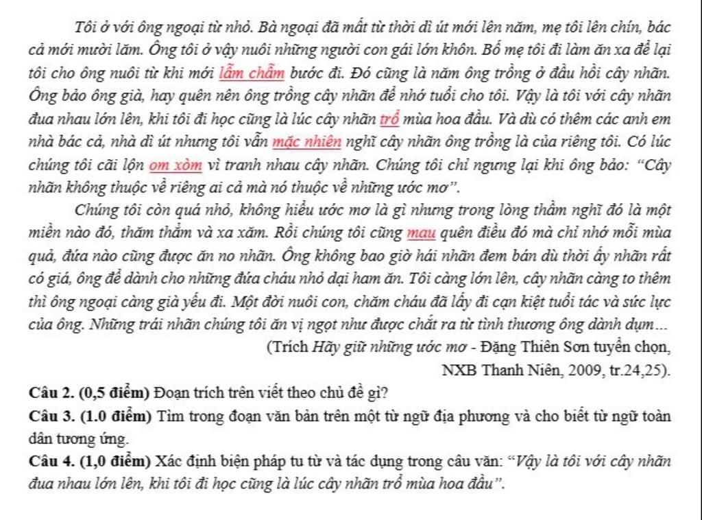 `-` Nội dung: Khắc họa hình ảnh người ông tảo tần, luôn chăm sóc và vun trồng, chăm bón cho cây nhãn nhỏ và tình yêu, sự hi sinh mà ông dành cho người cháu.