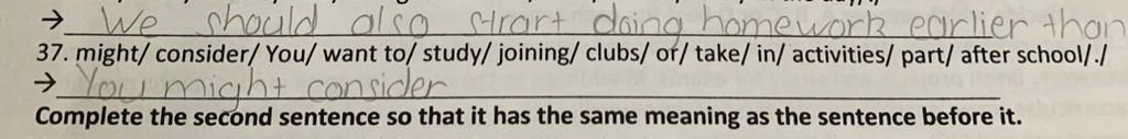 `-` Dịch : Bạn có thể cân nhắc việc tham gia câu lạc bộ hoặc các hoạt động sau giờ học.