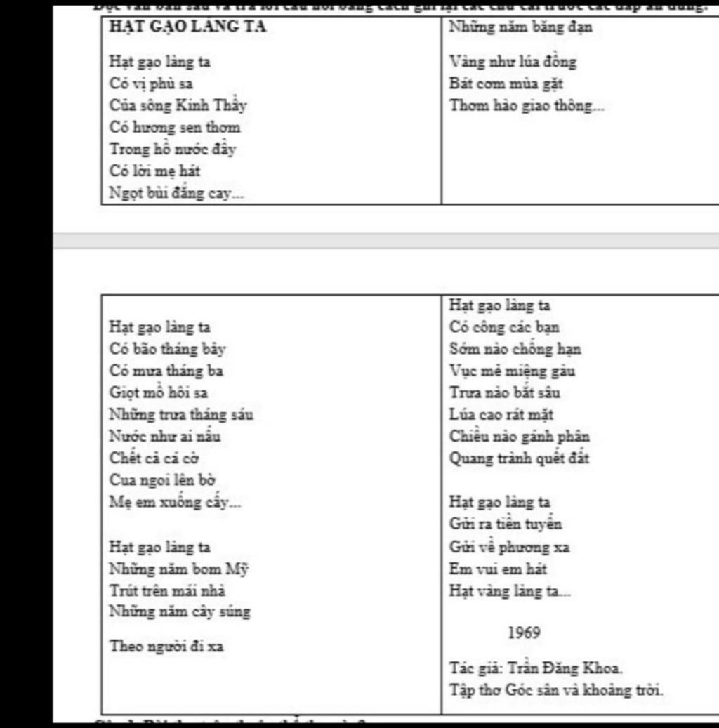 viết gạch đầu dòng giúp mình và mỗi ý phải liên quan đến bài Hạt gạo làng ta
