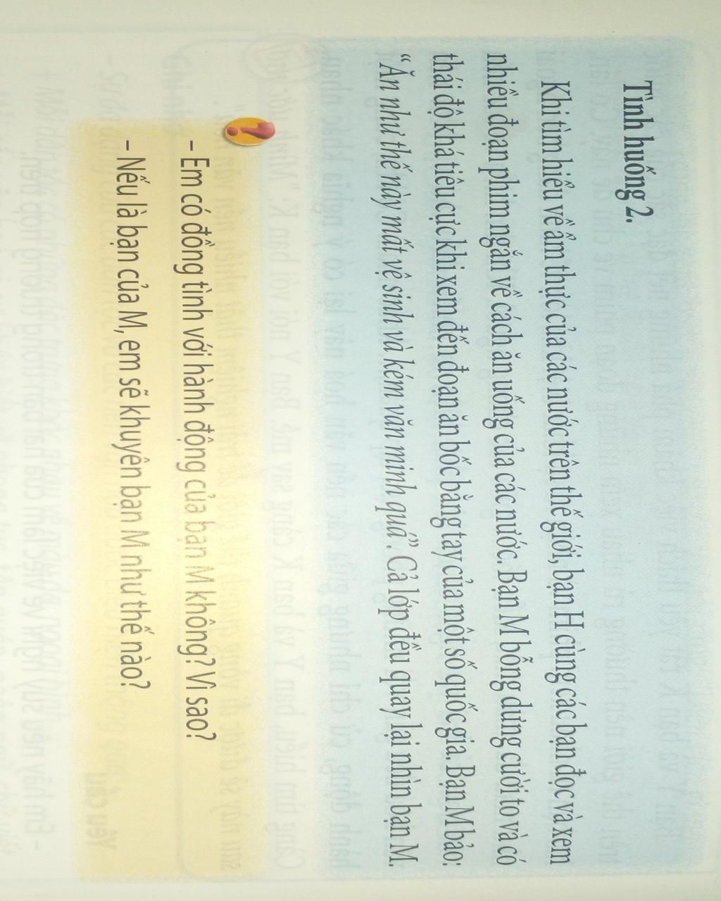 - Em không đồng tình với hành động của M vì đó là văn hóa của một quốc gia.