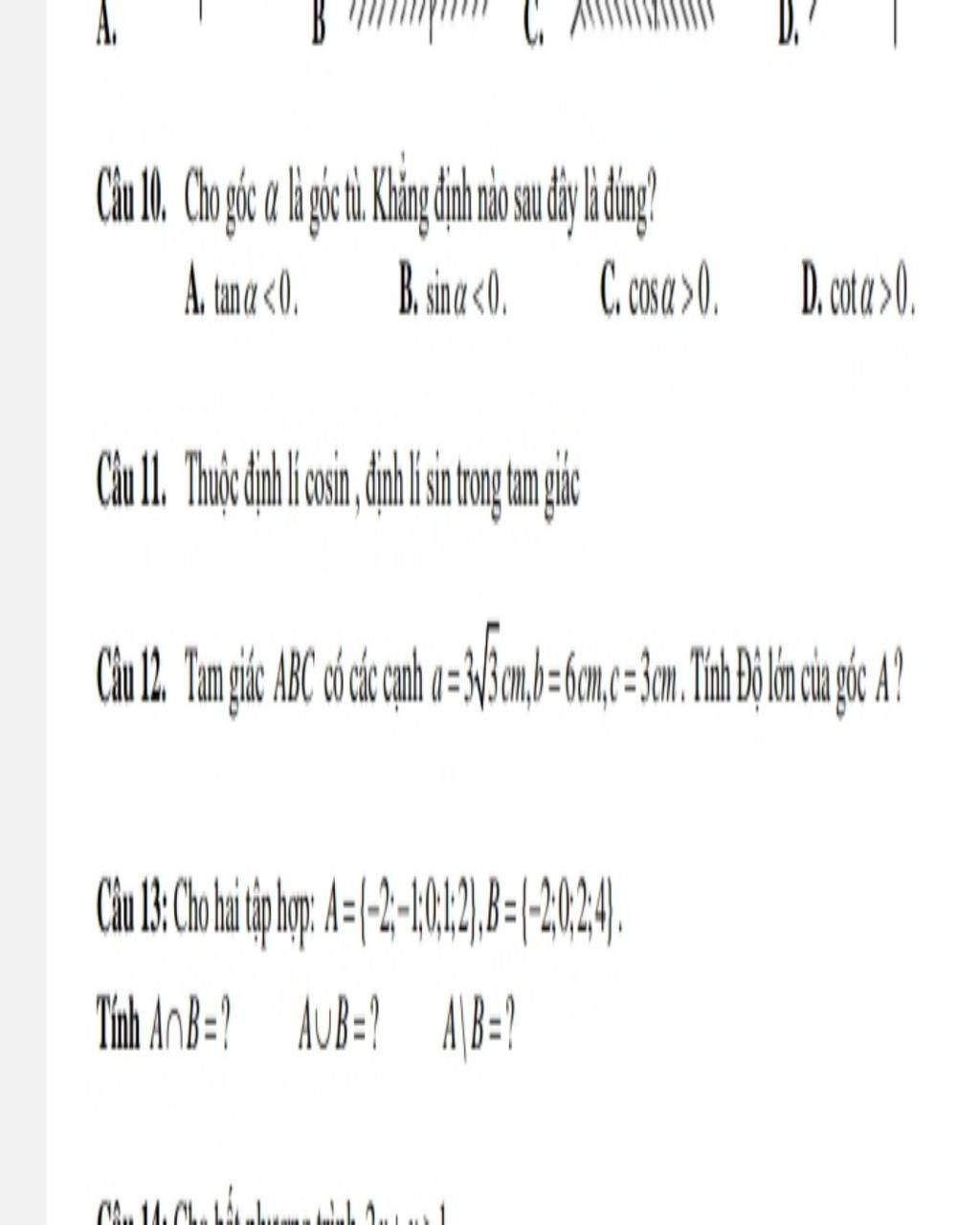 Tam giác ABC có các cạnh a=3√3cm, b=6cm, c=3cm. Tính độ lớn của góc A?