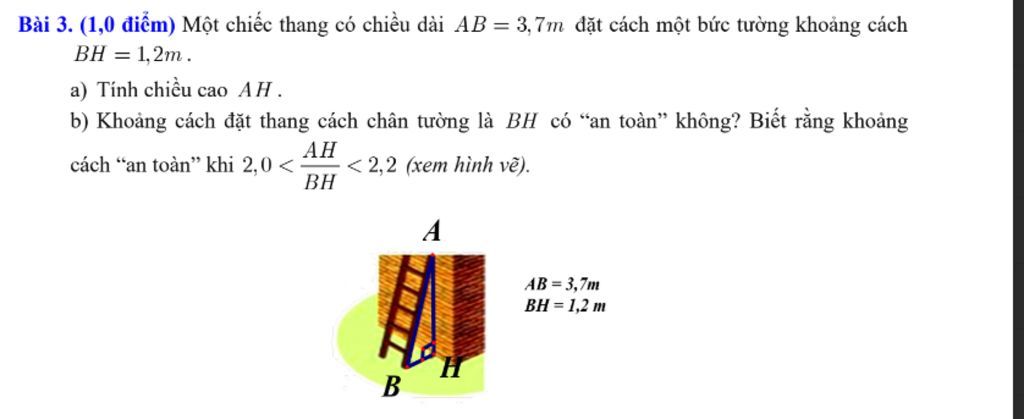 Mà khoảng cách "an toàn: là `2,0 lt (AH)/(BH) lt 2,2`