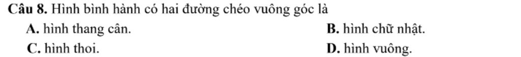 Hình bình hành có hai đường chéo vuông góc là hình thoi